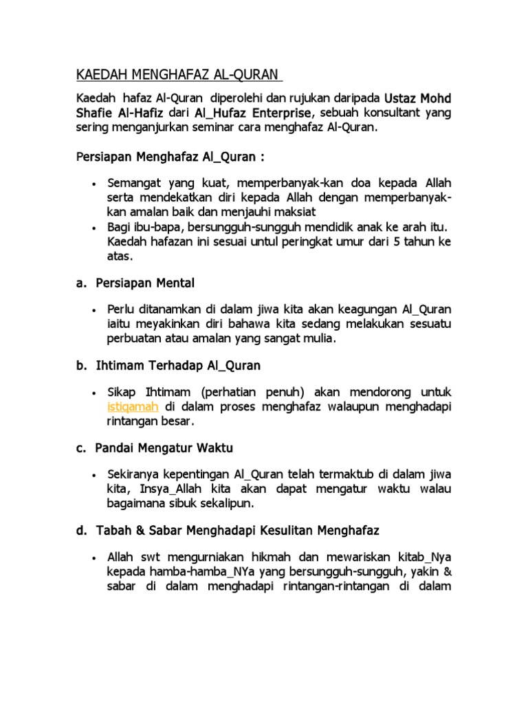 Related : Kaedah Hafazan Al-Quran Yang Sistematik / Top Pdf Kaedah Hafazan Al Quran Sistem Turki Kajian Di Tahfiz Al Quran Darul Tuba 123dok Com - Pusat pengajian islam dan pembangunan sosial.abdul hafiz bin abdullah (2006)..